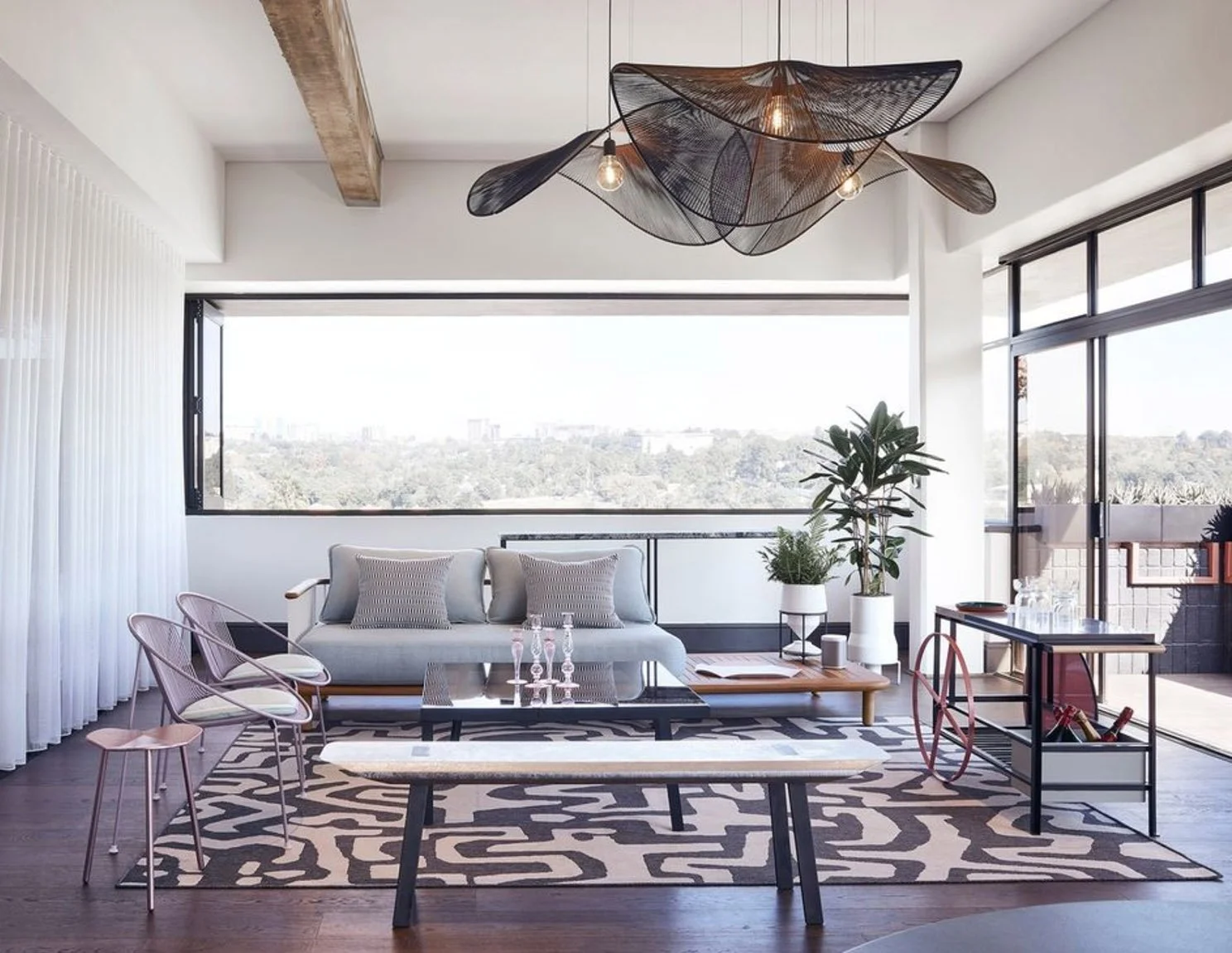FIVE Double volume space with 3 x small, 3 x medium & 2 x large pendants (ceiling height: 5400mm)
