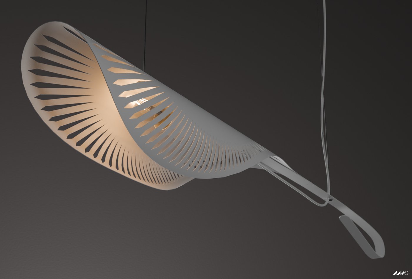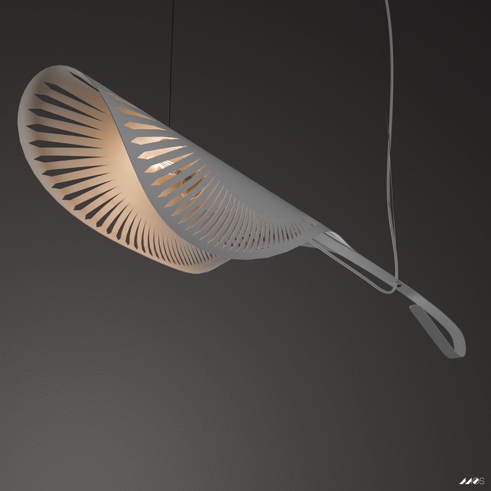 Swooping lamp that can be suspended at different angles & heights. We recommend an ambient bulb for a gentle ambient warmth or A60 for larger areas.