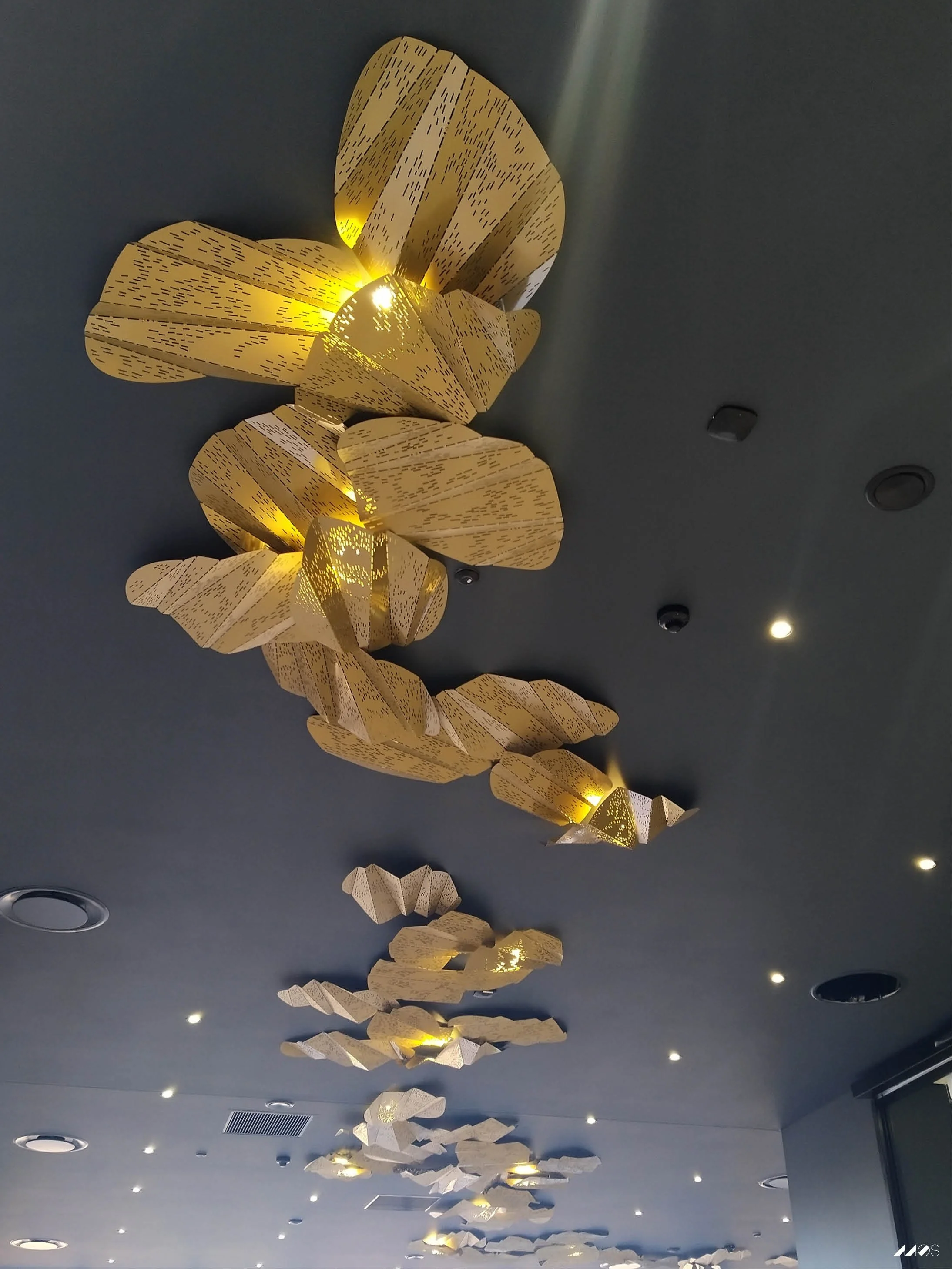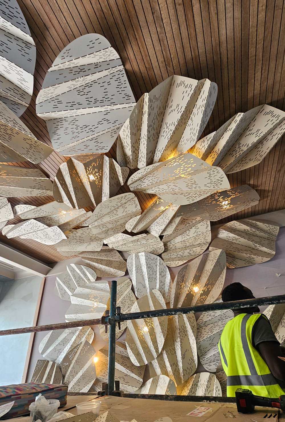 Lighting can be incorporated depending on the location and needs of the space. the Nebula was originally designed to compliment and diffuse down-lights and create a cascade of shape, shadow and colour.