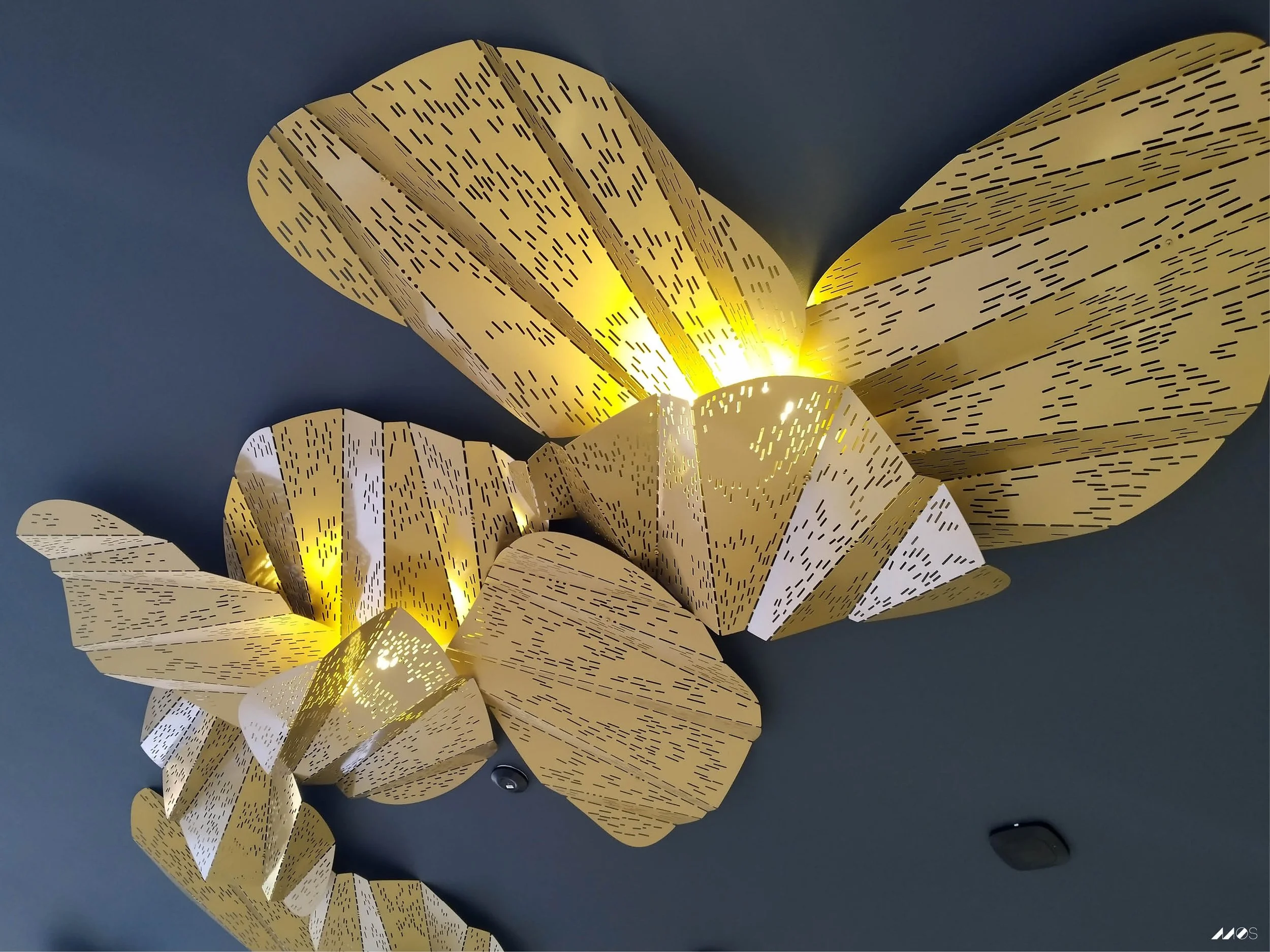 The Nebula is a decorative sculptural cladding designed for walls and ceilings, which can be scaled from a single shape, to a small grouping, and up to a large installation.