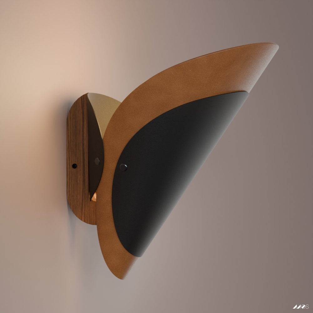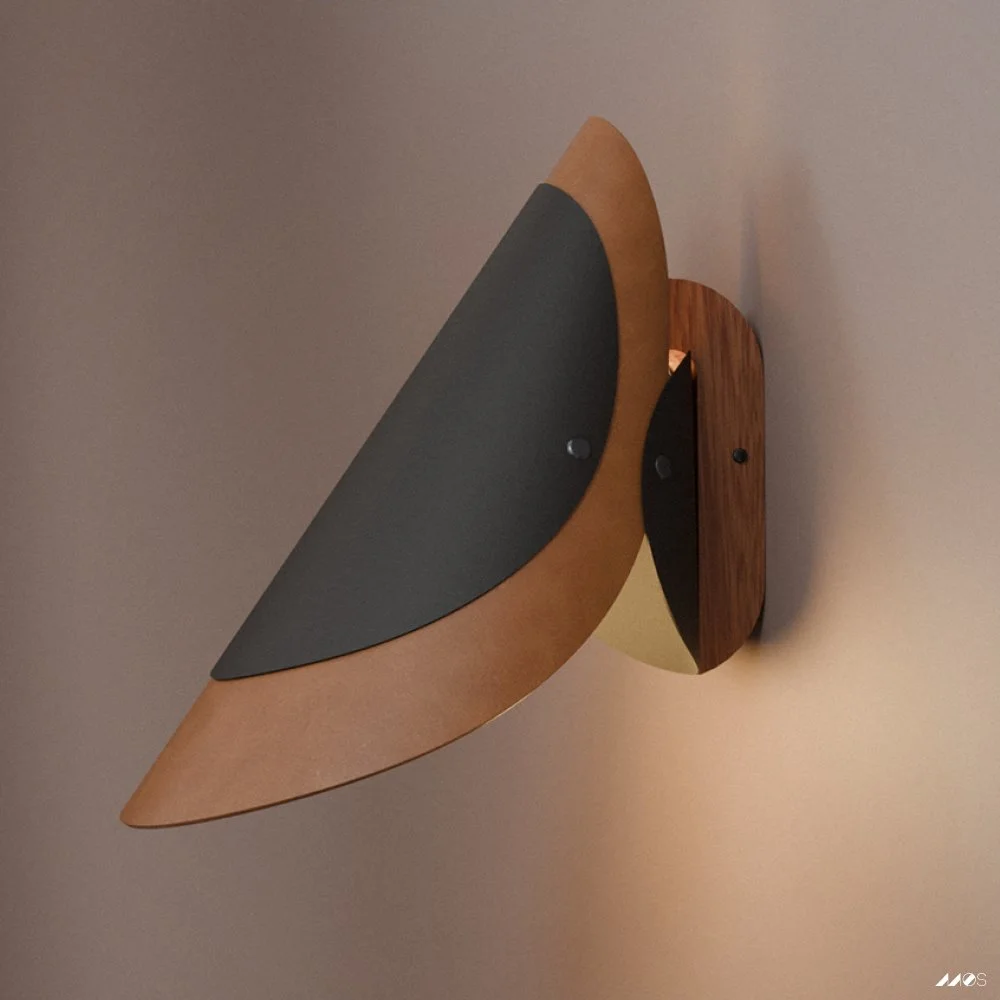 Designed to work as either an up-light or down-light, the Shoebill Sconce combines layers of leather, metal and wood, offering warmth and structure