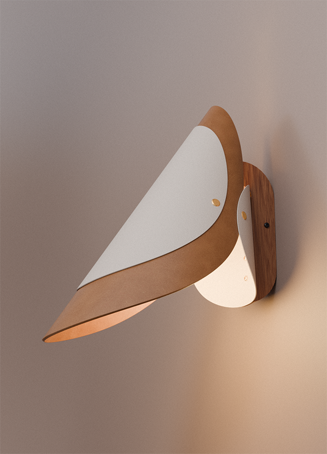 Designed to work as either an up-light or down-light, the Shoebill Sconce combines layers of leather, metal and wood, offering warmth and structure